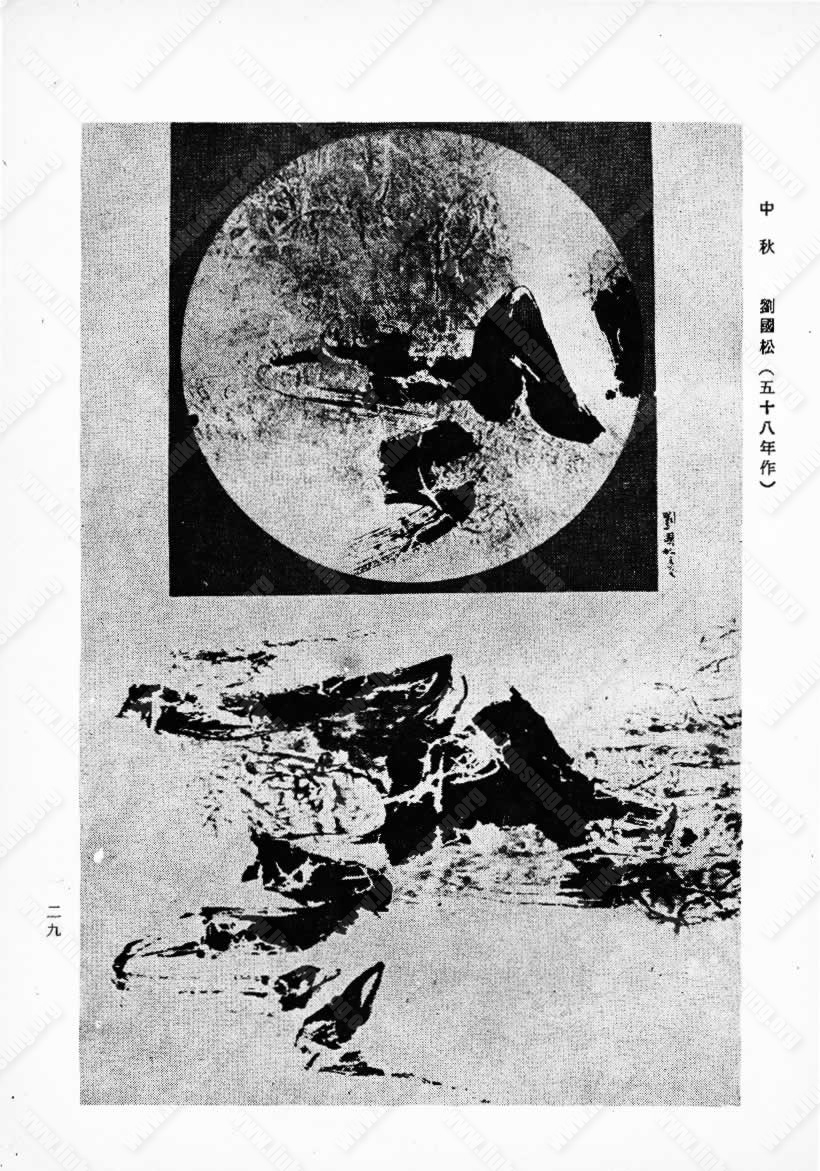 那时,我确信民族性的表现在于精神,而不在于材料工具,在表觋风格上,我欲将停滞不前的中国传统绘画向前推展并发扬光大。所以我利用西洋绘画的材料在油画布上来表现水墨泼洒的趣味,我就这样地画了两年,也画了不少这类风格的大画。也就在这时候,我把我的想法吿诉了五月画会中一个亲密的画友,起先他还与我辩论,经过三个晚上的交谈后,他于是接受了的思想。将当时正拿着一本菲律宾画家骚贝尔(Fernando Zobel) 的画集,模仿着画那种放射性的画完全丢掉,开始在油布上画水墨画了,开始时模仿宋代的山水画并加以抽象之,效果很好,我也就因为又有一位画友与我一起向我的理想迈进,同时怕他会以为我外面说他是受我的影响,所以我处处捧他,谁知他的自卑感作祟,从此却在背后暗地里坡坏我。随后做出许许多多不可吿人的不仁不义的事情来。实在叫人痛心由于我在建筑系敎书的关系,朋友中有许多建筑敎授与建筑师,有一次,他们在讨论中国新建筑的诸多问题,我在一边旁听,其中有一项观点对我的启示很大。他们认为在建筑上,无论运用任何材料,都应该将该材料的特性发挥到最高限度,不可用一种材料去代替并表现另一种材料的特栍,否则,就是作伪,就是欺骗,他们说,譬如在目前所建造的古典式建筑上,用水泥做一些假木造斗拱,更有在公园里用水泥做成竹桥,上面并涂以竹子的靑绿颜色,远看还为是竹桥,近看全是伪装。这也难怪台湾的水泥生意如此的兴隆了。