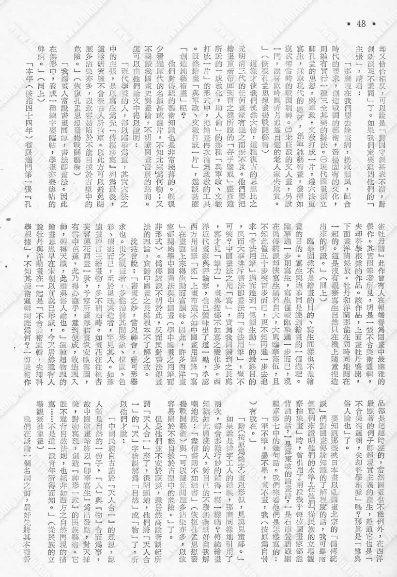 如果说是排字工人的错误,那么同样地引用了两次,都会那样巧妙的错得一模一样吗?传统绘画知识如此肤浅的人,对自己的不学无术只好自我解嘲地说:「尽信书则不如无书」(恢复孔孟思想发扬战鬪艺术)与「可以避免阅历多沾染亦多,以致容易陷于不能自拔于古型中的危险。」了。
