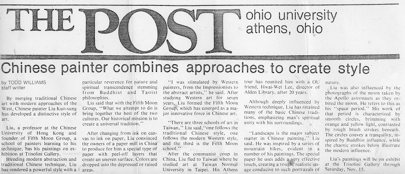 “There are three schools of art in Taiwan,” Liu said, “one follows the traditional Chinese style, one follows the modern Western style, and the third is the Fifth Moon school.”
