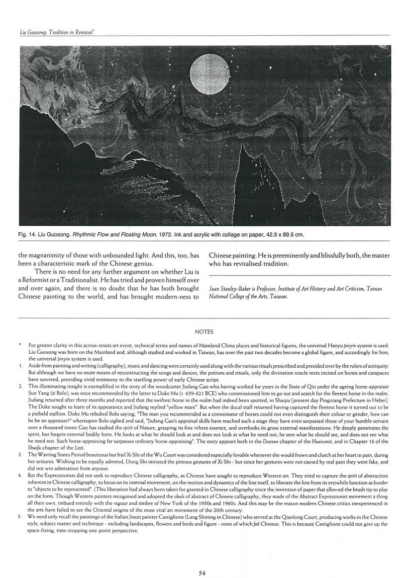 *For greater clarity in this across-straits art event, technical terms and names of Mainland China places and historical figures, the universal Hanyu pinyin system is used. Liu Guosong was born on the Mainland and, although studied and worked in Taiwan, has over the past two decades become a global figure, and accordingly for him, the universal pinyin system is used.