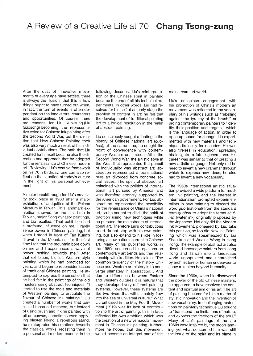 A Review of a Creative Life at 70 Literature Liu Kuo-sung-A Retrospective View Pages 6-7 2003.11 Chang Tsong-zung Back to all