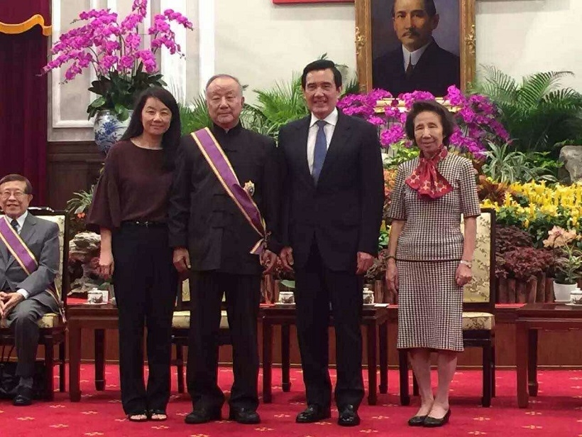 刘国松与家人,左起为女儿刘令徽、刘国松、马英九总统及刘国松夫人黎模华